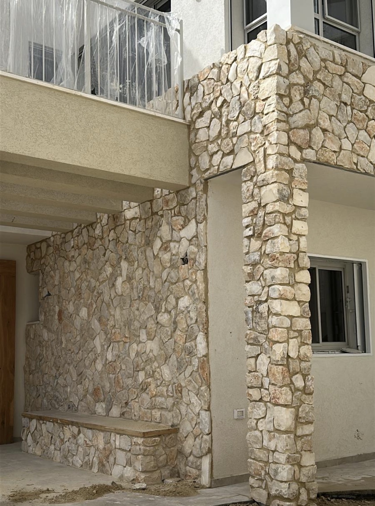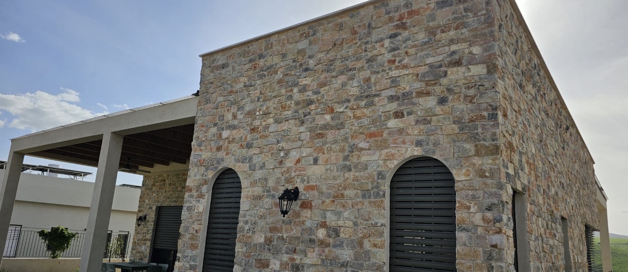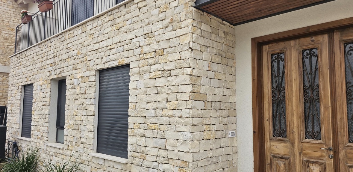 - 35- אבן לחיפוי קיר מקומית בגוון בהיר קיר פנימי